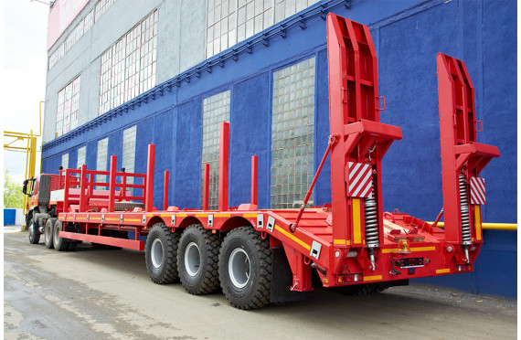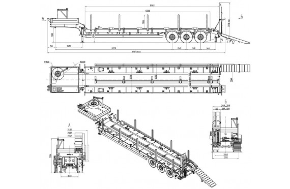 45000 кг, шины 445/65R22,5 или 395/85R20 / 6+1, платформа 10300 (11080 до трапов) x 2500 с уширителями до 3000 мм, механические трапы, ССУ 1510 мм, пневматическая или рессорная подвеска, съемные стойки 1500 мм, съемные борта